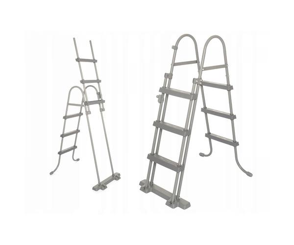 Лестница с подъемными ступенями ограничит свободный доступ в бассейн для детей.