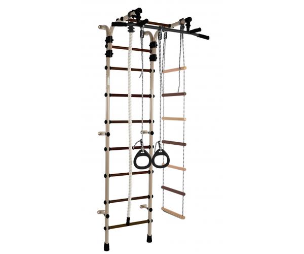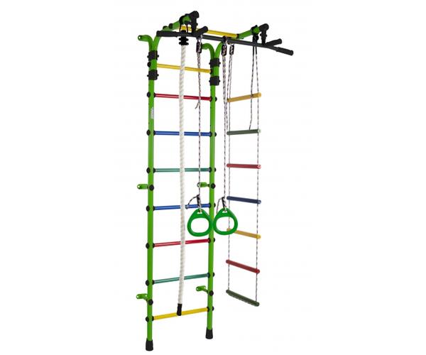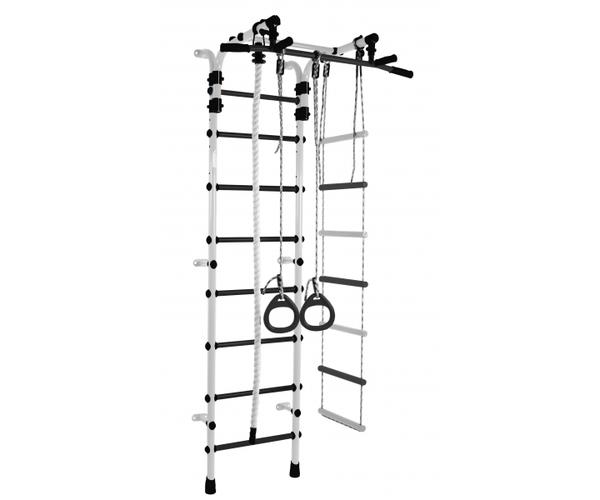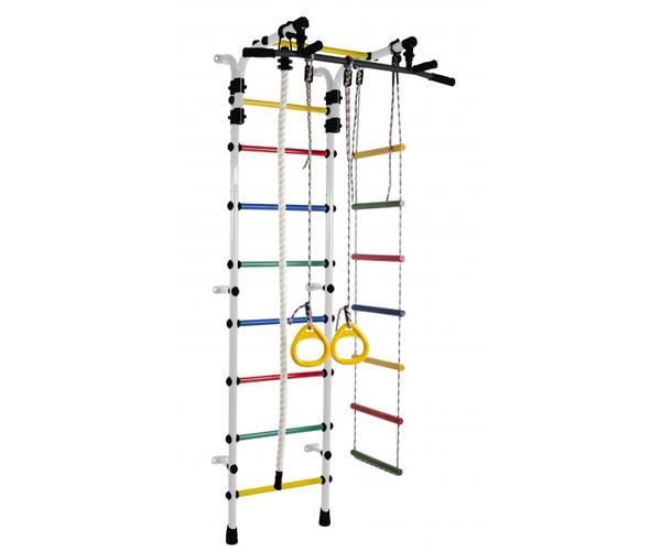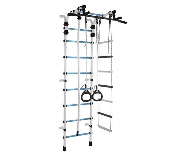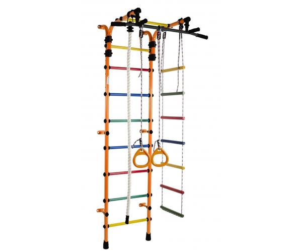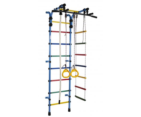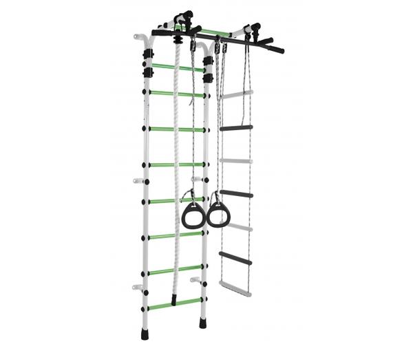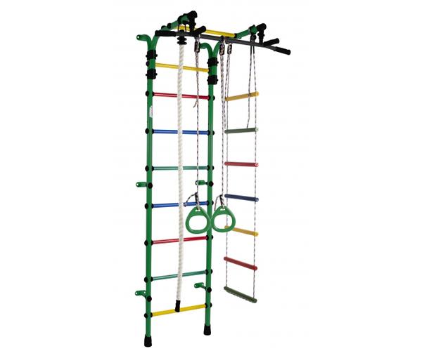 ДСК Формула здоровья Орленок состоит из каната, шведской стенки, гимнастических колец и веревочной лестницы. Тип установки комплекса Орленок – пристенный. Турник цельный, с обрезиненными перекладинами и широким хватом, каркас выполнен из металла. Высоту турника можно регулировать без ограничений, это позволяет использовать турник долгое время.
